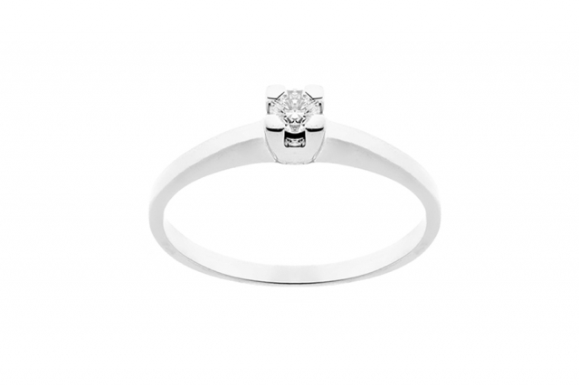 Anello Solitario in argento 925% rodiato bianco con Zircone da 0.13ct