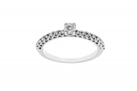 Anello Solitario in argento 925% rodiato bianco con Zircone da 0.15ct più ulteriori 16 Zirconi laterali per un totale di 0.16ct.