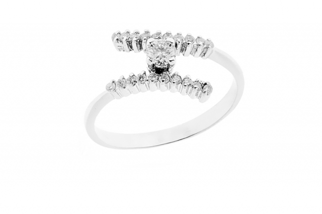 Anello Solitario in argento 925% rodiato bianco con Zircone da 0.16ct più ulteriori 20 zirconi laterali da 0.14ct.
