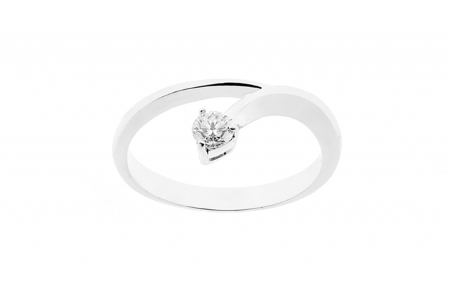 Anello Solitario in argento 925% rodiato bianco con Zircone da 0.20ct