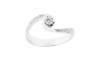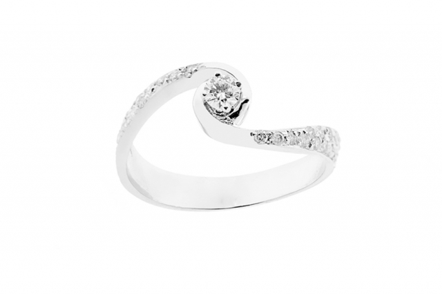 Anello Solitario in argento 925% rodiato bianco con Zircone da 0.12ct più ulteriori 30 zirconi laterali da 0.15ct