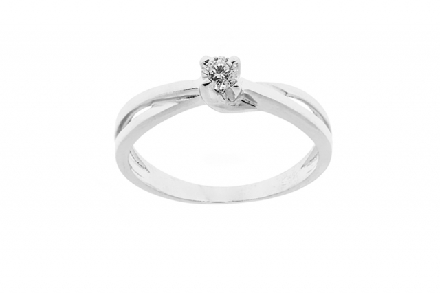 Anello Solitario in argento 925% rodiato bianco con Zircone da 0.14ct