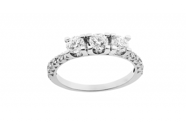 Anello Trilogy in argento 925% rodiato bianco con Zircone da 0.30ct