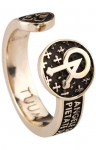 Anello Tuum INFINITUUM versione Angelo di Dio, realizzato in argento bronzato con preghiera dell'Angelus Dei in latino microscolpita sul gambo.