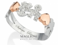 Anello Le Bebè - I Girocuore - bimbo e bimba in oro bianco e diamanti e cuori in oro rosa