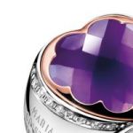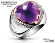 L'Anello più prezioso della collezione Quarzi realizzato in argento rodiato e rosa 925, con centrale a forma di cuore impreziosito dalla pietra ametista e da un contorno di diamanti taglio brillante. L'anello presenta la firma Maria Cristina Sterling su di un lato del gambo. Gioiello Made in Italy, completo di garanzia e confezione originale con interno in velluto di grande effetto... il tutto firmato MCS.