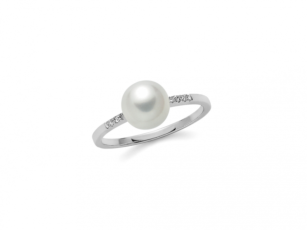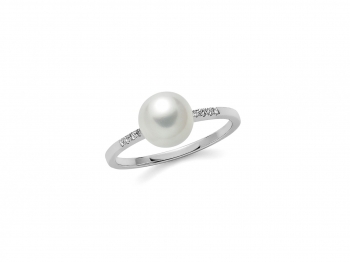 Anello Miluna con Perla Naturale e Diamanti da 0.026ct totali in oro bianco 9kt.