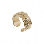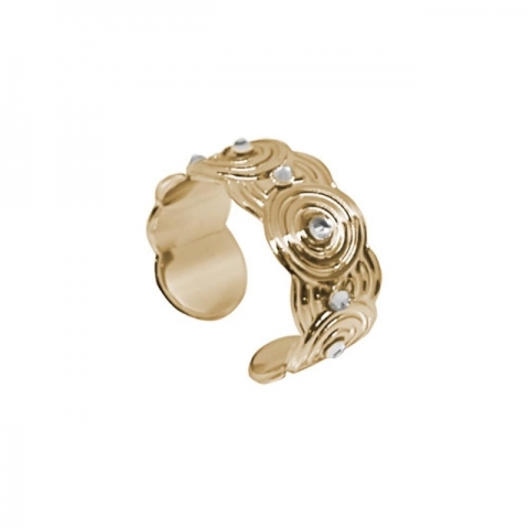 Anello BOCCADAMO Maya a fascia regolabile in bronzo placcato oro giallo (altezza cm 1), con decori concentrici di ispirazione Maya e cristalli Swarovski crystal.
