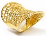 Anello fascia fantasia vistoso e particolarissimo con effetto diamantato, in argento 925% dorato. L'anello � possibile richiederlo solo nelle misure indicate in questa scheda prodotto. Gioiello Made in Italy completo di confezione regalo.