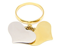 Anello con 2 ciondoli cuore pendenti in oro giallo e bianco 18kt