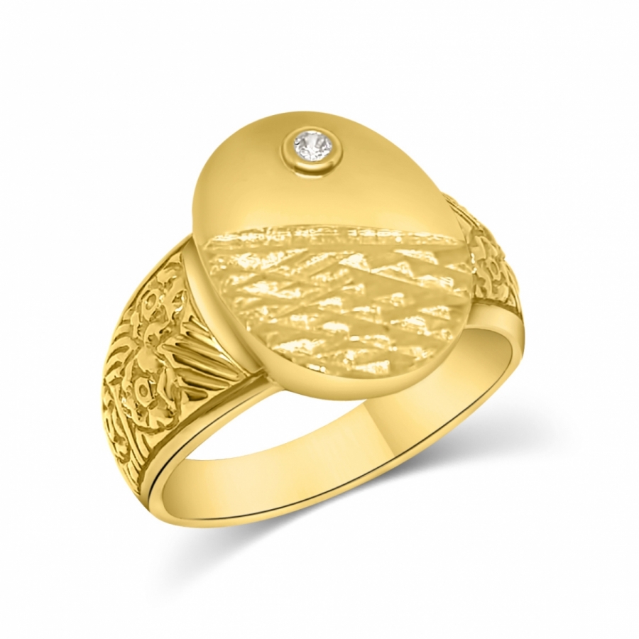 Anello ovale da uomo in oro giallo 18kt e zircone cz