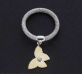 Anello con ciondolo firmato FOGI by Gianni Carità in oro bianco, giallo e diamanti da 0.04ct