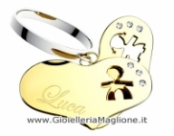 Anello Le Bebè - I Cuori - 2 ciondoli cuore con bimbo e bimba in oro bianco e giallo 18kt e diamanti
