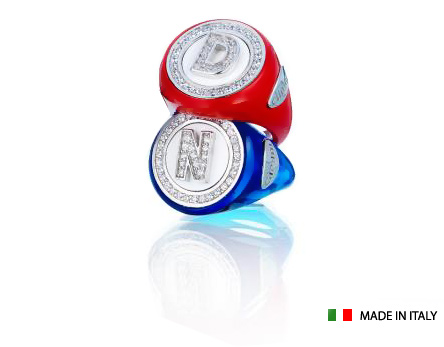Anello Dimmi Jewels collezione Coloured Name in resina colorata ed iniziale a scelta ricoperta di zirconi taglio brillante.