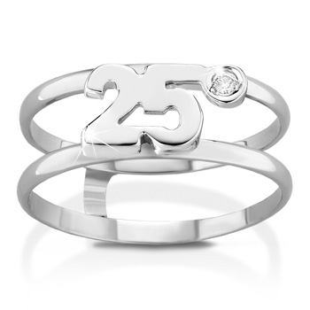 Anello VERA in oro bianco 18kt e numero 25 con diamante naturale