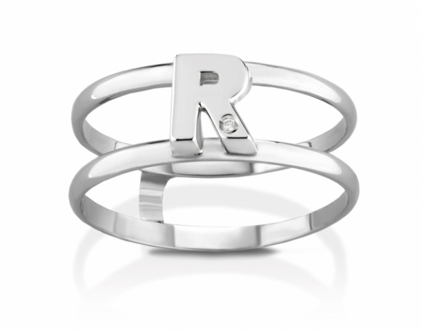 Anello VERA in oro bianco 18kt e iniziale a scelta con diamante naturale