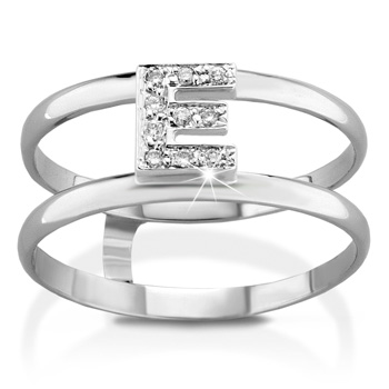 Anello VERA in oro bianco 18kt e iniziale E con diamanti naturali
