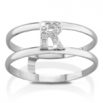 Anello VERA in oro bianco 18kt e iniziale R con diamanti naturali