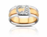 Anello VERA in oro bianco 18kt e doppia iniziale a scelta con diamanti naturali. Vera, un anello unico, elegante e prezioso in oro bianco 18kt con lettera ricoperta di diamanti taglio brillante. L'anello può essere indossato da chiunque in 3 modi differenti: con o senza fascetta in argento smaltata bianca, turchese o nera, oppure inserendo all'interno la propria fede, rendendola così ancora più preziosa. L’effetto è sofisticato e originale, dalla forte simbologia. Pensata per chi desidera fare un dono esclusivo in occasione di una ricorrenza speciale: l'anniversario di matrimonio, la nascita di un figlio, la "promessa" alla futura sposa, un regalo alla più cara amica... Per chi sceglie di acquistarla per vestire la propria fede, è disponibile solo per i modelli UNOAERRE classica da 5 grammi, classica da 7 grammi, classica da 10 grammi e per la fede comoda UNOAERRE da 4 mm. Il modello scelto va indicato direttamente nel campo "Richieste? Personalizzazioni?" del carrello d'acquisto. Il modello è brevettato e tutti gli anelli sono marchiati con il logo Vera. Gioiello Made in Italy accompagnato da certificato di garanzia, confezione regalo originale Vera e le 3 fascette in argento smaltato (con un ulteriore risparmio di 60 euro poiché 2 sono un Nostro Omaggio!).