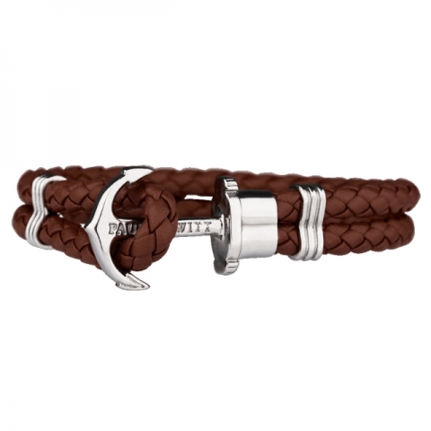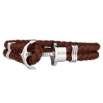 Bracciale con ancora Paul Hewitt PHREPS in metallo bianco e pelle marrone