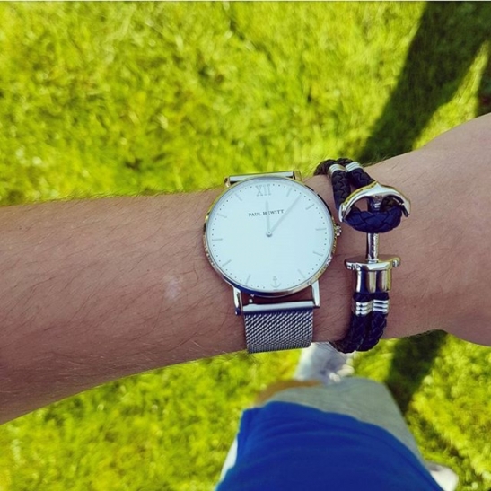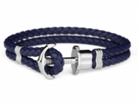 Bracciale con ancora Paul Hewitt PHREPS in metallo bianco e pelle blu.