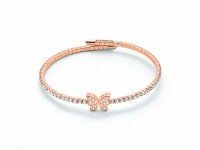 Bracciale KIARA con Farfalla e zirconi collezione Basik Chic. Il bracciale è semirigido in ottone placcato oro rosa. Il marchio KIARA è la bijutteria in ottone anallergico del gruppo Cielo Venezia 1270, produttrice dei famosissimi gioielli MILUNA. Gioiello completo di confezione regalo, shopper e certificato di garanzia.