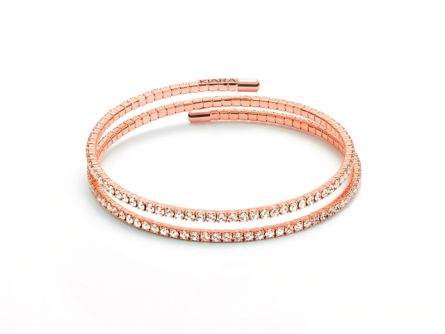 Il bracciale è semirigido in ottone placcato oro rosa.