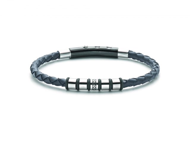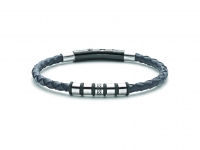 Bracciale Yukiko Uomo in acciaio e pelle blu.