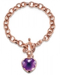 Bracciale con ciondolo cuore pendente in argento rosa 925 e ametista firmata Maria Cristina Sterling
