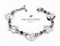 Bracciale con cuori traforati e pietre dure in argento 925 firmato Maria Cristina Sterling