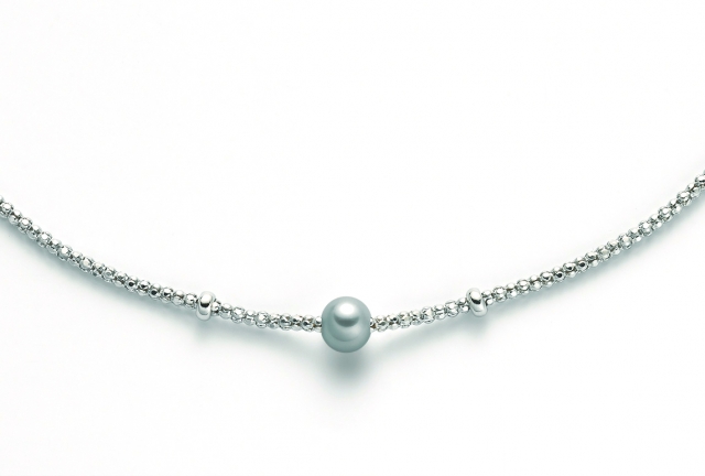 La collana è morbida e composta da Perla grigia naturale d'acqua dolce da 7,5-8 mm di diametro.