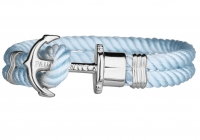 Bracciale con ancora Paul Hewitt PHREPS in metallo bianco e nylon blu sky. Bracciale in stile marittimo ispirato alla stabilità dell'ancora marina e alla libertà derivata della navigazione... un bracciale che rappresenta chi sente e vive un forte legame con il mare. Il bracciale con ancora Paul Hewitt PHREPS è realizzato in tessuto nylon e metallo anallergico. Il bracciale è disponibile in 3 differenti misure, M (18 cm... consigliato ad un pubblico femminile), L (19 cm) e XL (20 cm). Si prega di selezionare la misura nel menù a tendina qui di fianco. Il bracciale Paul Hewitt PHREPS è spedito completo di sacchetto in tessuto nautico.