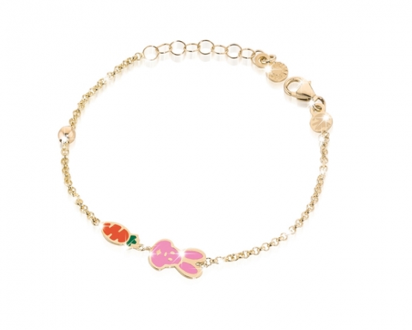 Bracciale Le Bebè - Primegioie - carota e coniglietto con smalto colorato in oro giallo