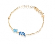 Bracciale Le Bebè - Primegioie - collezione "fortuna" topolino ed elefante con smalto colorato in oro giallo 9kt adatto ai maschietti.
