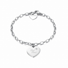 Bracciale S'Agapò by BrosWay collezione BE MY ALWAYS, in acciaio 316L con cuore, cristallo bianco e incisione “Best Friends" (sul fronte) e "Friendship" (sul retro).