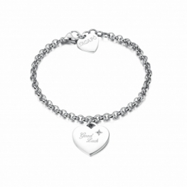 Bracciale S'Agapò by BrosWay collezione BE MY ALWAYS, in acciaio 316L con cuore, cristallo bianco e incisione “Good luck" (sul fronte) e "Luck" (sul retro).