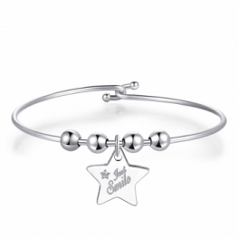 Bracciale rigido S'Agapò by BrosWay collezione BE MY ALWAYS, in acciaio 316L con stella, cristallo bianco e incisione “Just Smile".
