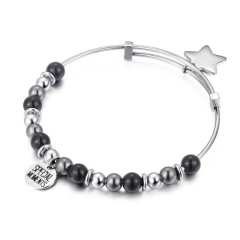Bracciale S'Agapò by BrosWay collezione HAPPYS Special Moments con Stella, rigido e in acciaio 316L con sfere in ematite ed onice. Il bracciale può essere indossato così com'è oppure comporlo acquistando altri ciondoli della linea HAPPY. La felicità nasce dalle piccole cose che sono in grado di emozionarci. L'allegria e l'energia di gioielli unici che trasmettono un messaggio, un augurio, una dichiarazione. Un talismano da portare sempre con sé, simbolo dei nostri sentimenti da donare o donarsi come promessa di gioia e serenità senza tempo. Per ricordarsi di non smettere mai di sorridere. Una linea giovane, raffinata e low cost. S'Agapò, la nuova nata in casa Bros Manifatture, entra nel mercato della gioielleria fashion con tutte le caratteristiche vincenti del marchio Brosway. Gioiello completo di garanzia e confezione regalo S'Agapò.