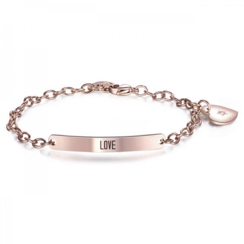 Bracciale S'Agapò by BrosWay collezione HAPPY in acciaio 316L PVD oro rosa con pendente a forma di infinito e barretta centrale con scritta Love.
