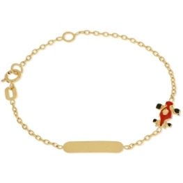 Bracciale battesimale da bambino con targhetta personalizzabile con nome oppure con data e macchina da F1 smaltata, il tutto in oro giallo 18kt.