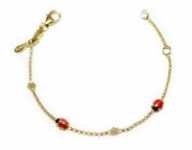 Bracciale battesimale con coccinelle smaltate e fiorellini in oro giallo 18kt