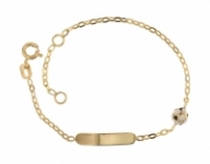 Bracciale battesimale da bambino con targhetta personalizzabile con nome oppure con data e pallone da calcio smaltato, il tutto in oro giallo 18kt.