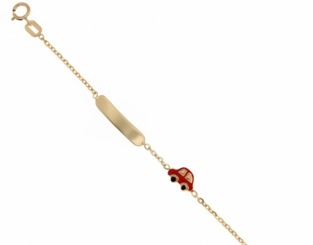 Bracciale battesimale da bambino con targhetta personalizzabile con nome oppure con data e macchina smaltata, in oro giallo 18kt.