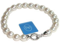 Femminilità, eleganza e classe... tutte qualità racchiuse in uno splendido bracciale di perle a filo unico con chiusura in oro bianco 18kt tempestata di diamanti taglio brillante. Le 22 perle Coltivate Giapponesi Akoya (la migliore qualità al mondo) hanno una forma sferica e diametro 8.00 mm. Il bracciale, firmato IKI, verrà spedito nella sua confezione originale con certificato di garanzia della casa che ne attesta la qualità dei materiali impiegati. Sfogliando il nostro catalogo online potrai trovare anche la collana, a un filo di perle, da poter eventualmente accoppiare.