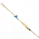 Bracciale battesimale da bambino con targhetta personalizzabile con nome oppure con data e delfino smaltato, il tutto in oro giallo 18kt.