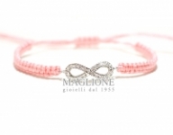 Bracciale Infinito in corda rosa con simbolo Infinito in argento 925 e Swarovski taglio brillante luminosissimi. Il bracciale è a lunghezza regolabile. Infinito come l'amore per lui, per lei, per il tuo animale, infinito come la passione per il tuo hobby, infinito come la vostra amicizia. Porta sempre con te l'infinito che senti dentro! Gioiello Made in Italy completo di confezione regalo.