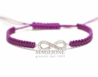 Bracciale Infinito in corda viola con simbolo Infinito in argento 925 e Swarovski taglio brillante luminosissimi. Il bracciale è a lunghezza regolabile. Infinito come l'amore per lui, per lei, per il tuo animale, infinito come la passione per il tuo hobby, infinito come la vostra amicizia. Porta sempre con te l'infinito che senti dentro! Gioiello Made in Italy completo di confezione regalo.