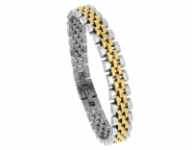 Bracciale maglia tipo jubilee in acciaio bicolore placcato rodio e oro giallo.