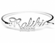Il bracciale è rigido così da non ruotare sul braccio e restare sempre con il nome sopra. La maglia è lucida a canna rettangolare, con un diametro interno che oscilla da 6 cm fino a 7 cm (in base alla lunghezza del nome). La lunghezza massima del nome è di 4.00 cm, si ribadisce e consiglia quindi di richiedere al massimo 9 caratteri da intagliare per ottenere un risultato visivo ottimale.