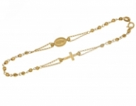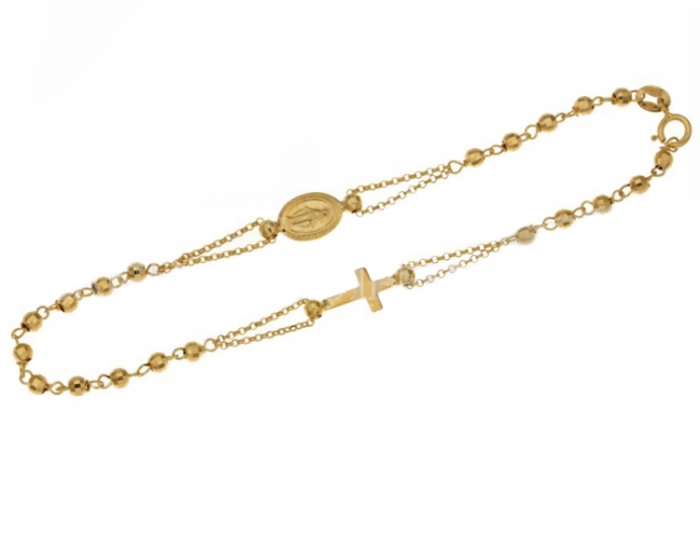Bracciale Rosario con maglia diamantata, grani lucidi, Crocetta e Madonnina il tutto in oro giallo 18kt.